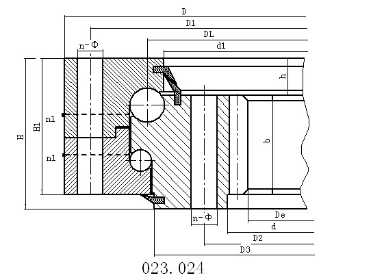 雙排球式回轉支承具有三個座圈,鋼球和隔離塊可直接排入上下滾道,根據(jù)受力狀況,安排了上下兩排直徑不同的鋼球。這種開式裝配非常方便,上下圓弧滾道的承載角都為90°,能承受很大的軸向力和傾翻力矩。當徑向力大于0.1倍的軸向力時滾道須特殊設計。雙排球式回轉支承的軸向、徑向尺寸都比較大,結構緊固。特別適用于要求中等以上直徑的塔式起重機,汽車起重機等裝卸機械上。